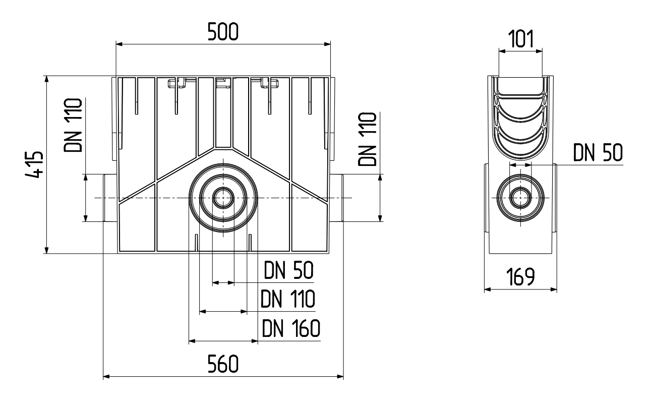 Пескоуловители Ecoteck комплектуются решеткой в зависимости от особенностей той или иной водоотводной системы, места ее установки и эксплуатации. Также в них предусмотрены боковые стыковочные соединения с трубами Ø50, Ø110 и Ø160 и соединения с пластиковыми каналами 100 высотой 65, 125, 175.