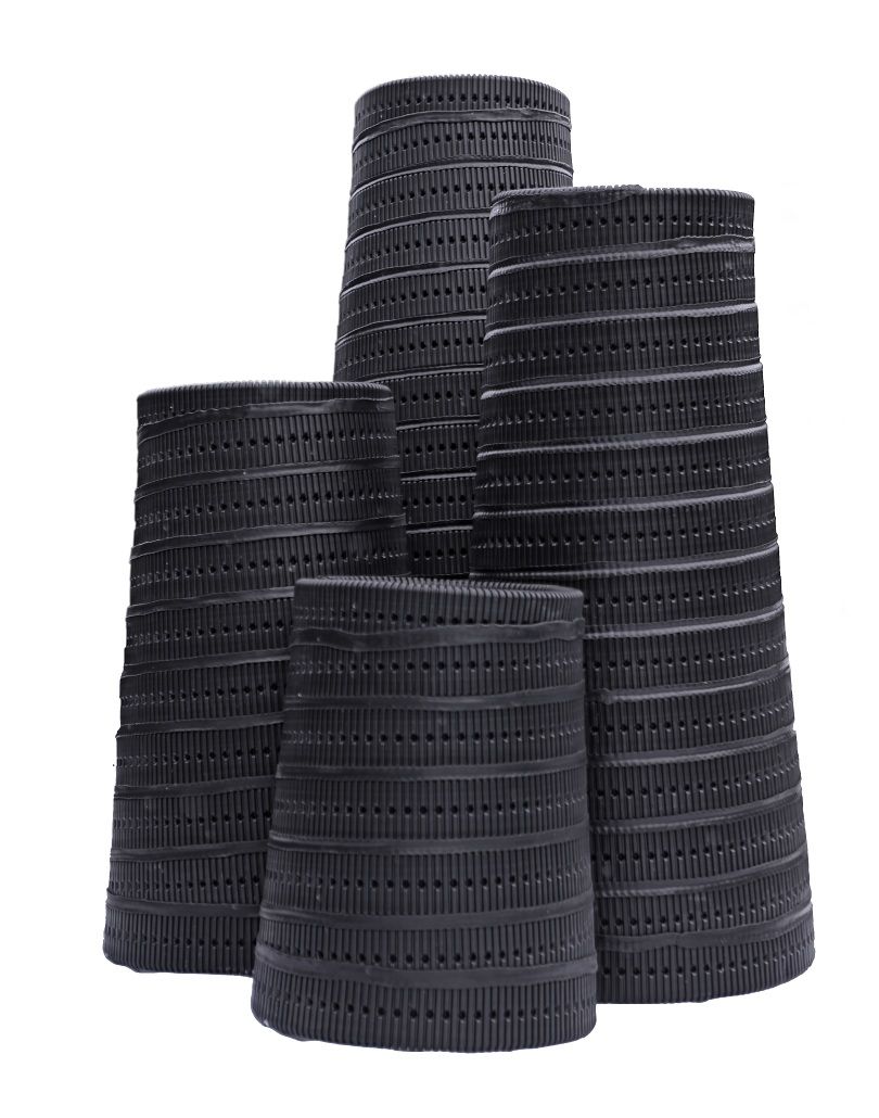 Фильтрационные колодцы для дренажа производятся с перфорацией и без. Фильтрационные колодцы - емкость без дна конической формы, предназначенная для накопления жидкости и последующей инфильтрации в грунт. Перфорированные колодцы для дренажа пропускают воду через стенки и дно. Колодцы без перфорации выпускают влагу в почву через дно. Если грунт хорошо проводит воду, выбирайте дренажный колодец без перфорации, в остальных случаях выбирайте колодец с перфорациями.