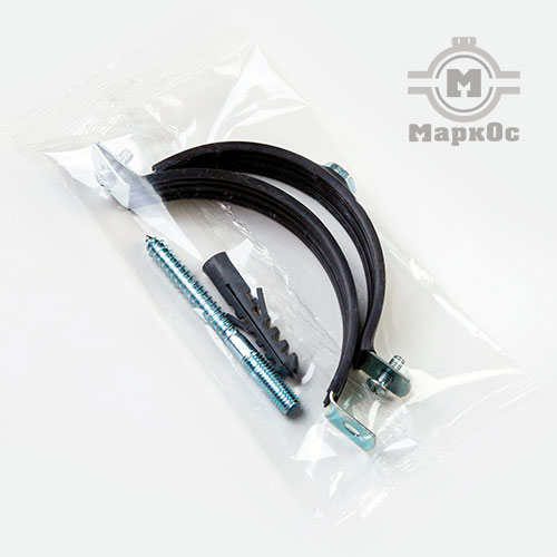 Сантехнические трубные хомуты для крепления водопроводных и канализационных труб. Хомуты снабжены резиновым профилем и приварной гайкой.