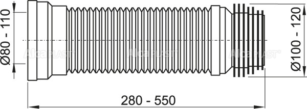 Труба гибкая фановая для выпуска унитаза от 280 до 550 мм.арт.A97 ALCA PLAST