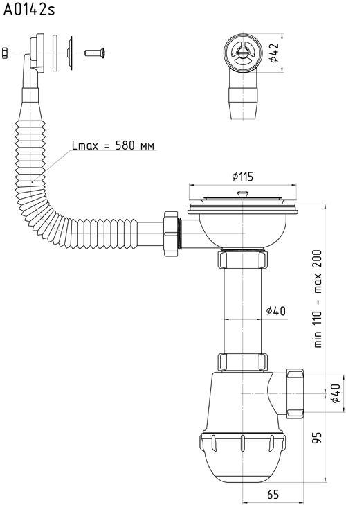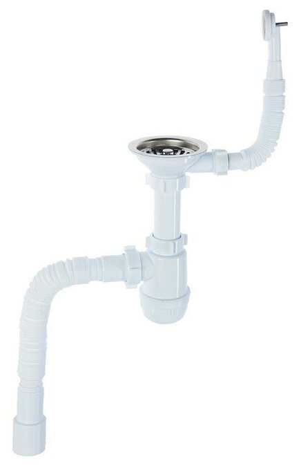 • Сифон сливной АНИ пласт А0142SA15 для кухонных моек с диаметром сливного отверстия 90-98 мм, с переливом