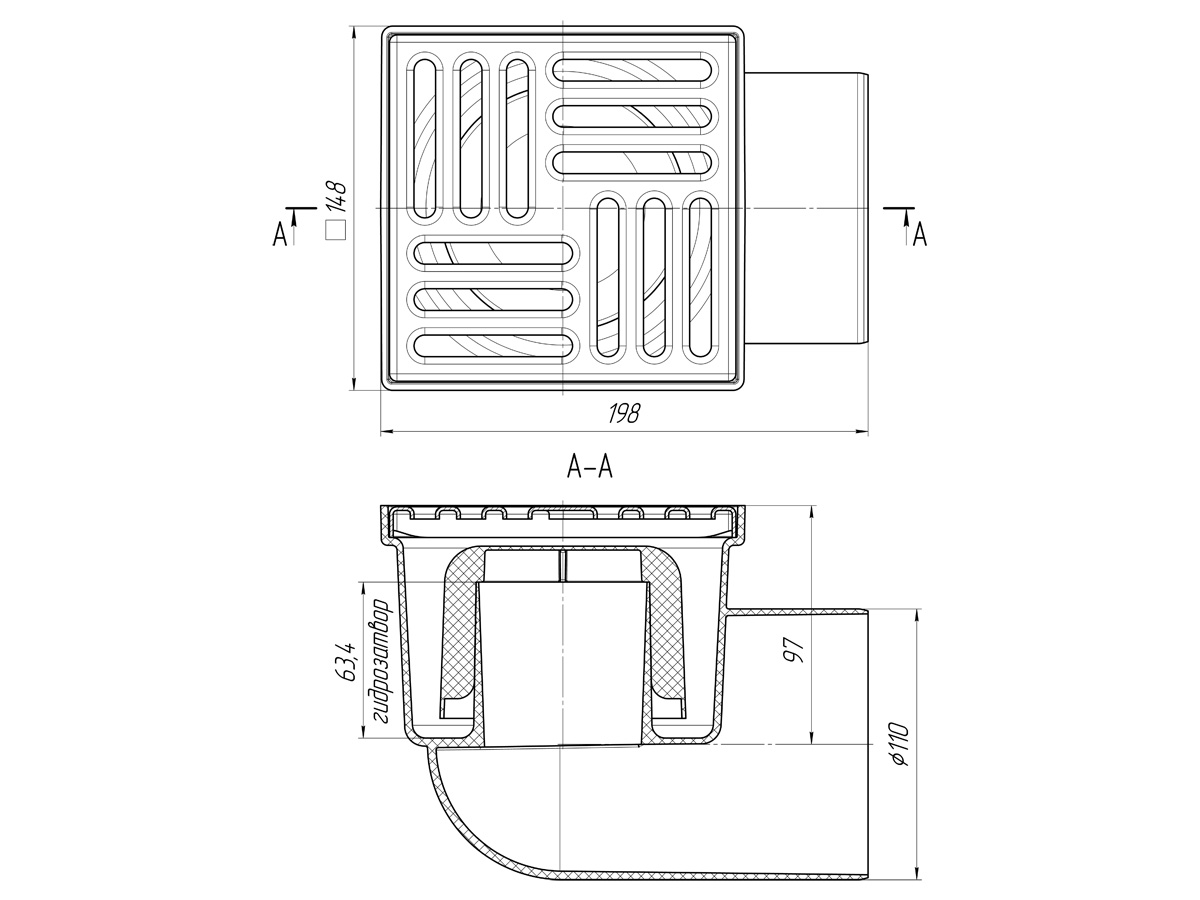 Трап гориз.вып. 110(150х150) нерж. ТА1112