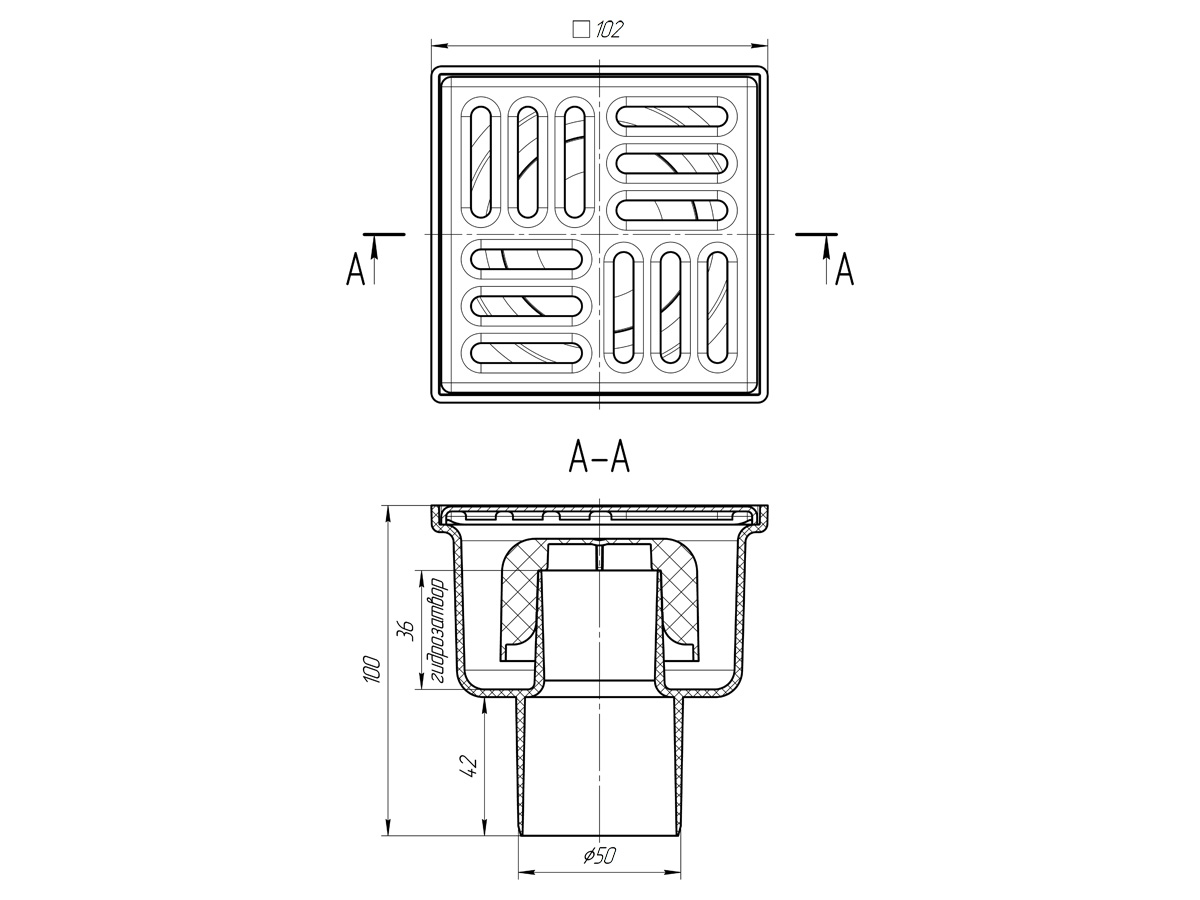 Трап верт. вып. 50 (100х100) нерж. ТА5202