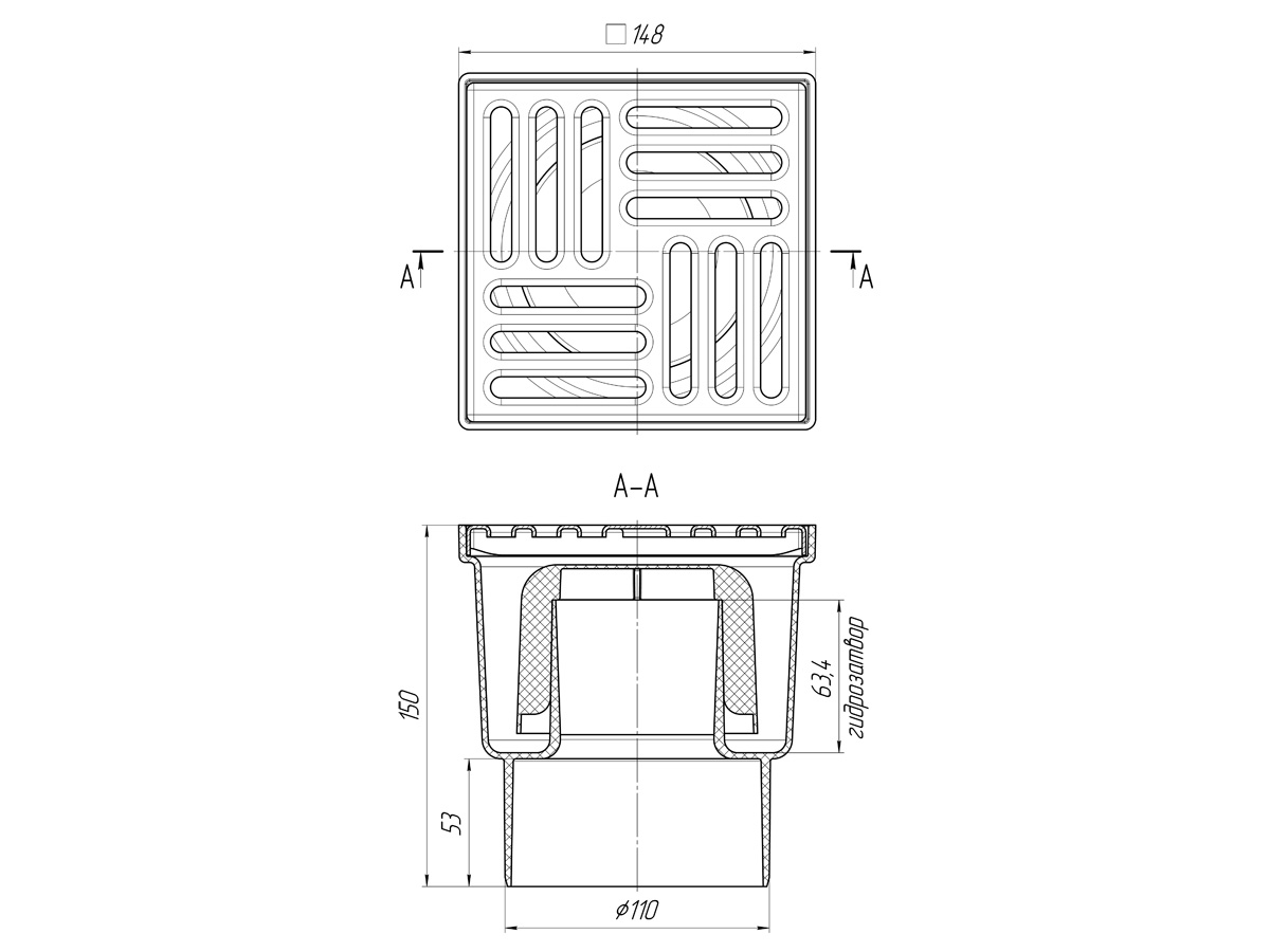 Трап верт. вып.110 (150х150) нерж. ТА1212