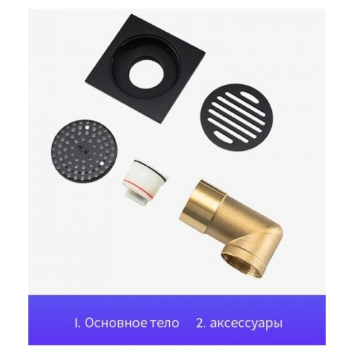 -Трап 50 горизонтальный GAPPO латунь 100*100 (черный) сухой затвор G81053-6