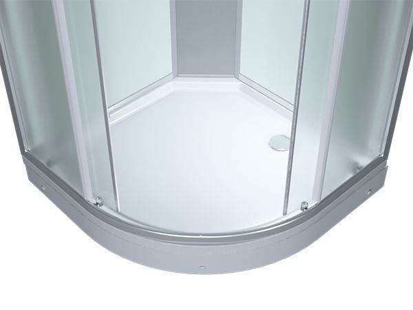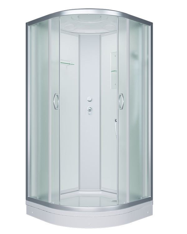 ERLIT ER3508 P-C3 - это душевая кабина в классическом стиле, полукруглой формы (четверть круга), стандартных размеров 80 на 80 см, с раздвижными дверьми, оборудованная системой ручного и тропического душа. Стекла закаленные, травмобезопасные, матовое стекло толщиной 4 мм. Поддон низкий 15 см, на металлическом каркасе, в комплекте с сифоном. Задняя стенка - черное стекло.