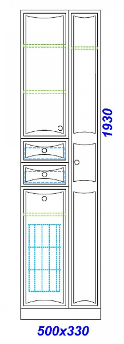 Пенал Барселона П5/к 50х193х33 см с корзиной для белья, 2-х створч., 2 ящика арт.Ba.05.05