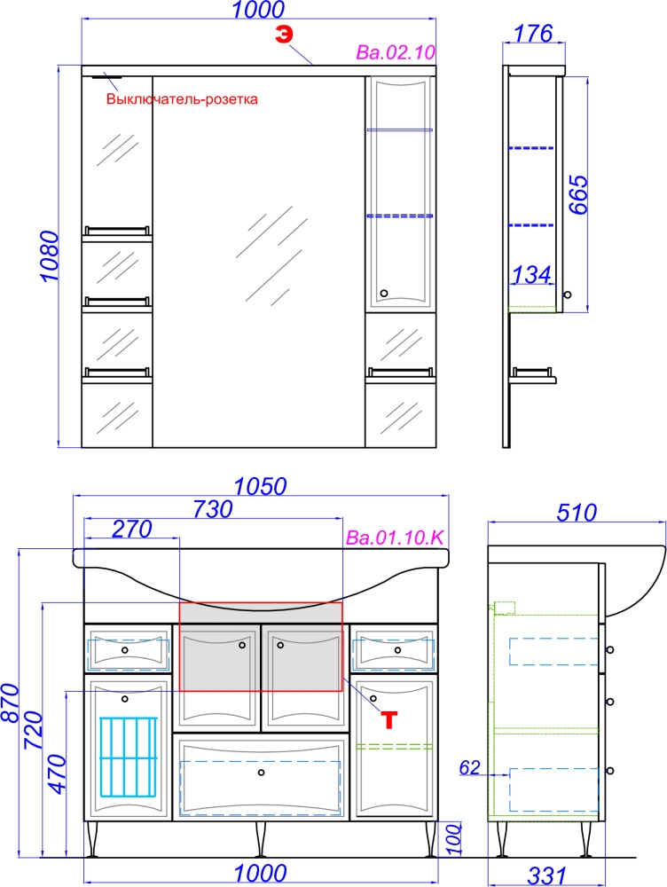 - Форма мебели: прямоугольная