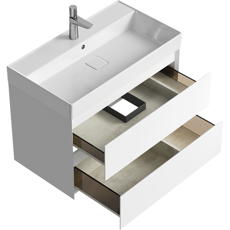 -Подвесная тумба Aqwella Geometria с двумя ящиками 81 см, цвет белый с кер. раковиной Вилис 800