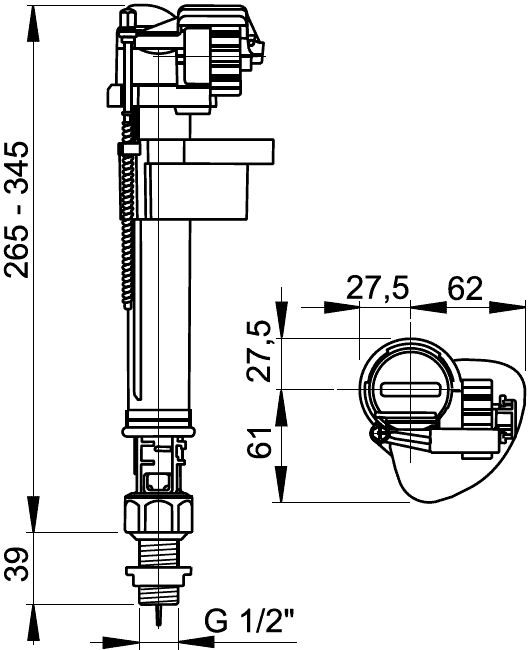-Механизм впускной с нижней подводкой для керамических бачков,выход пластик ALCA PLASTарт.A17 1/2"