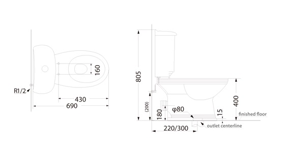 Унитаз компакт Creo Ceramique MARSEILLE cиденье с микролифтом700*408*815 арт/ MA1001N (UF3021-332)