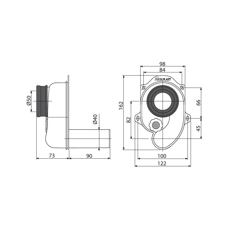 -Сифон для писсуара ALCA PLAST горизонтальный выпуск арт.A45B