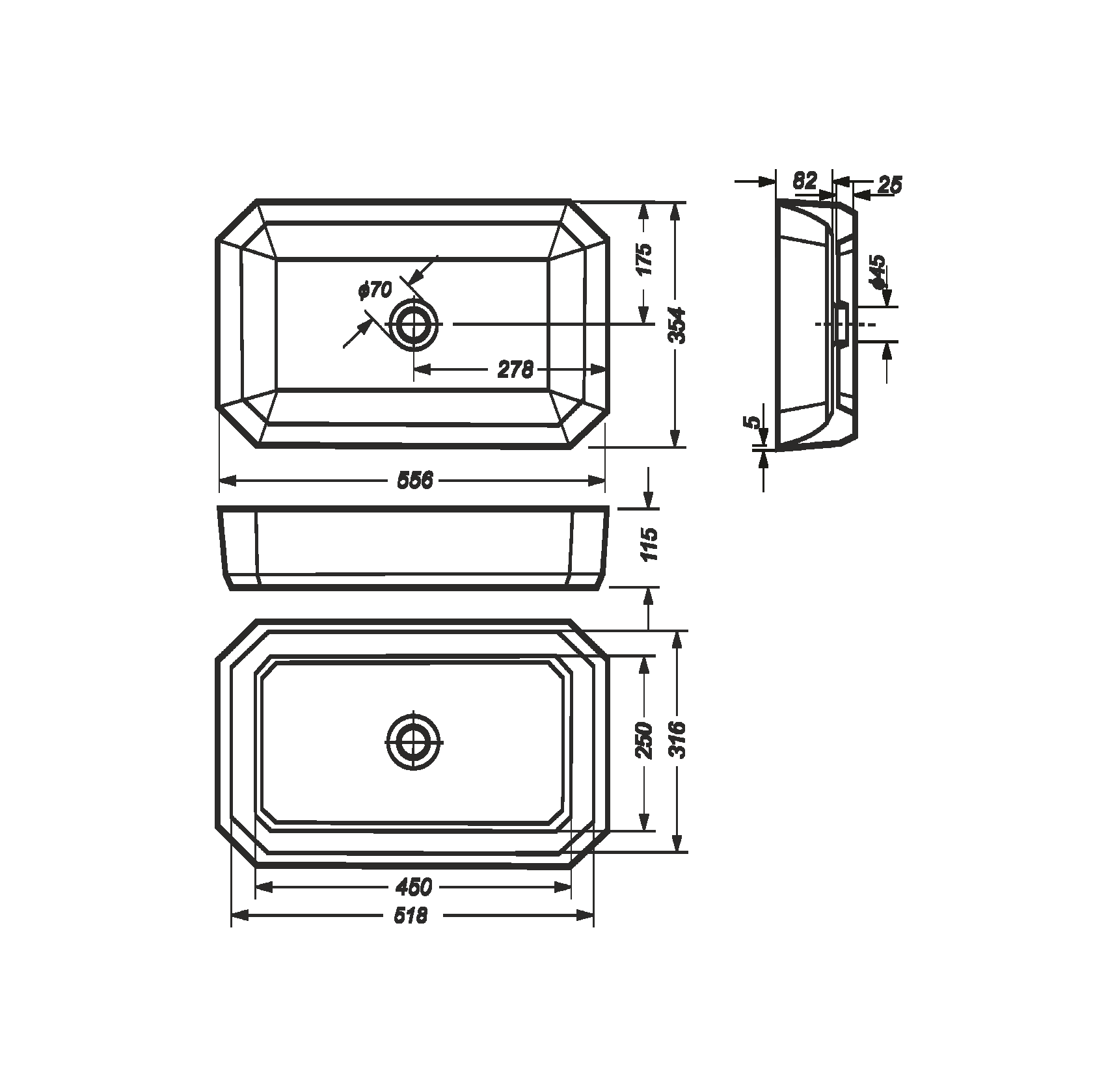 Размеры умывальника: 556 х 354 х 115 мм