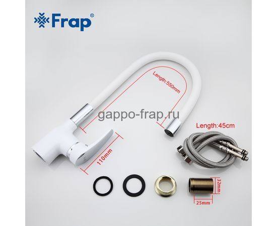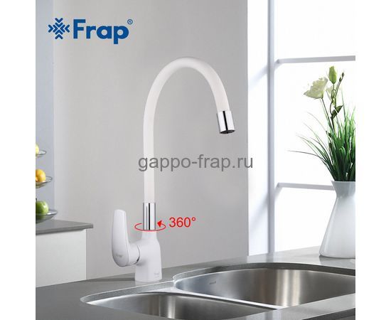 Смеситель для кухни Frap d-35 на гайке МАКСИ (белый/хром) 4453-03 АКЦИЯ