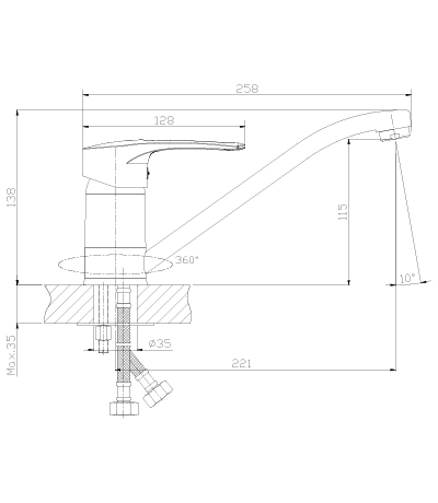 Смеситель для кухонной мойки, Rossinka одноручный, с поворотным изливом 250мм., керам картридж 40мм. T40-21