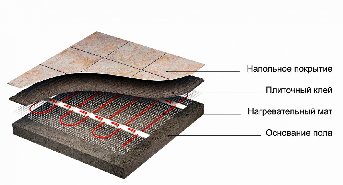 Нагревательные маты СТН не требуют обязательной установки в бетонную стяжку, возможна укладка непосредственно в плиточный клей. Используются в случаях, когда необходимо минимизировать высоту поднятия уровня пола.